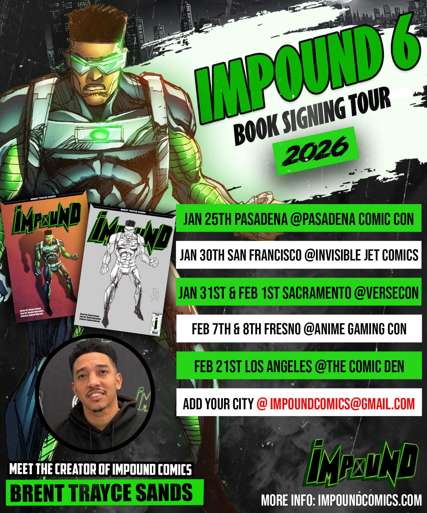 With Impound Issue #6 officially on the way — featuring a legendary cover illustrated by Denys Cowan, THE IMPOUND TEAM HAD TO PUT TOGETHER A TOUR SO THAT YOU HAVE A CHANCE TO MEET THE CREATOR HIMSELF.