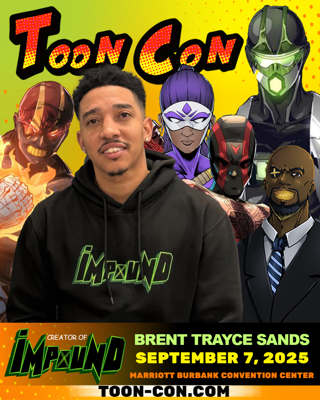 We’re excited to announce that Brent Trayce Sands, the creator of Impound Comics, will be a guest at Toon Con on September 7, 2025, at the Marriott Burbank Convention Center!