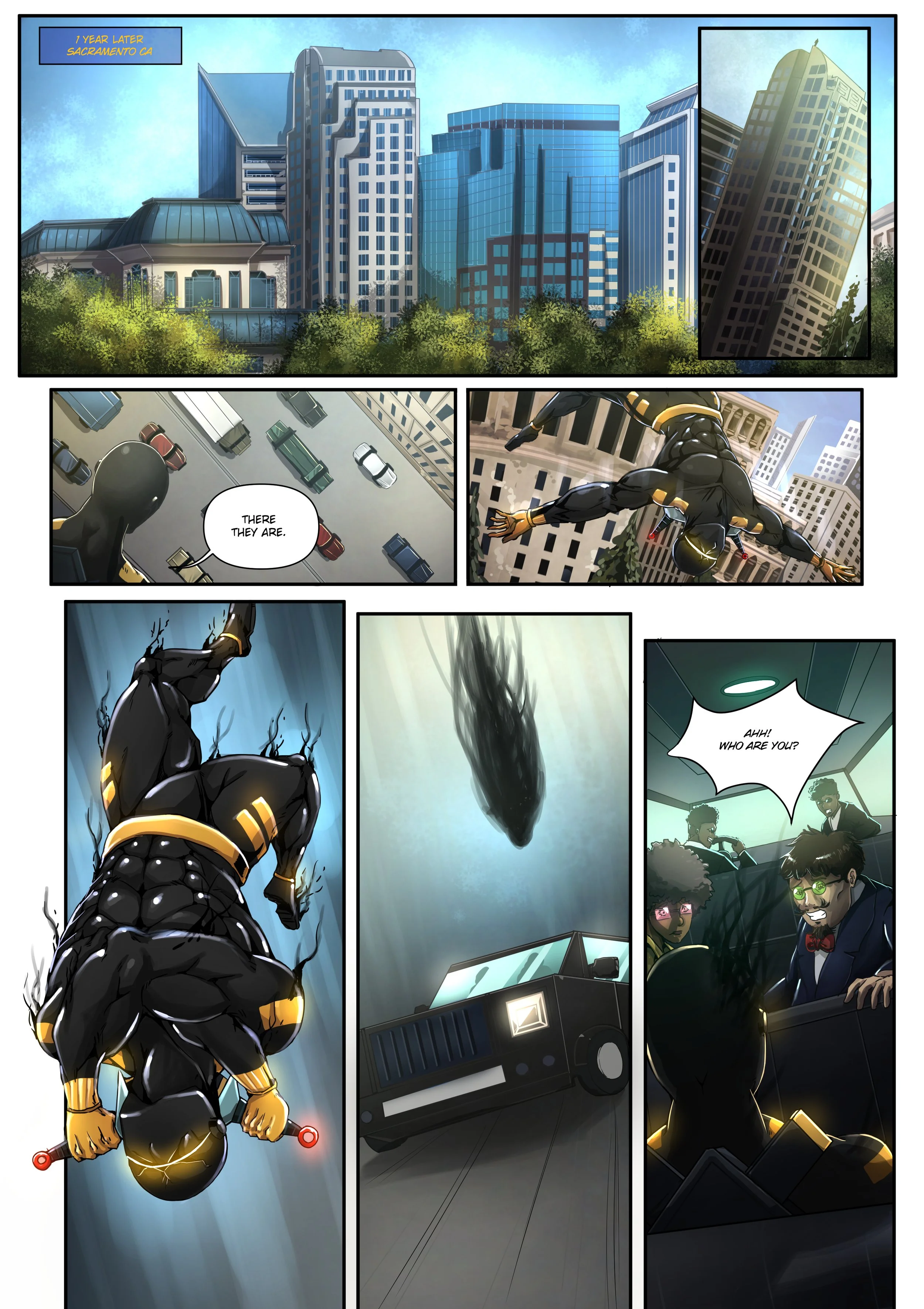 This page from Seraph Issue #2 is one of the creator’s favorite because it captures Seraph’s entrance in the most cinematic way possible. Sacramento’s skyline sets the stage, and then in a heartbeat, Seraph is in motion—diving headfirst toward his target with precision and deadly intent.